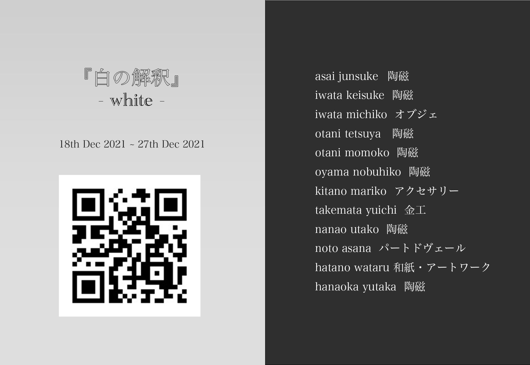 十数名の作家が白をめぐって表現する展覧会。